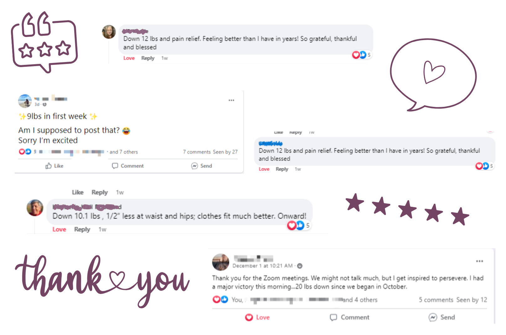 Gain access to a private community of like-minded women, all working toward the same goal. Share experiences, advice, motivation, additional recipes and resources, and more in a judgment-free zone.